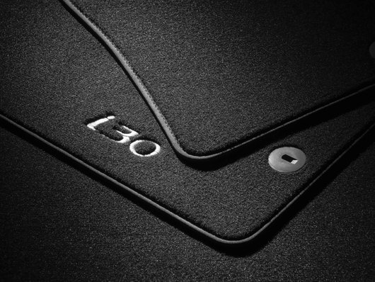 Високоякісні велюрові килимки забезпечують захист підлоги та стиль, завдяки чому інтер’єр виглядає чистим і новим. Вони спеціально розроблені, щоб ідеально прилягати до ніг і тримаються на місці стандартними точками кріплення та протиковзкою підкладкою. Килимки переднього ряду вишиті логотипом автомобіля.